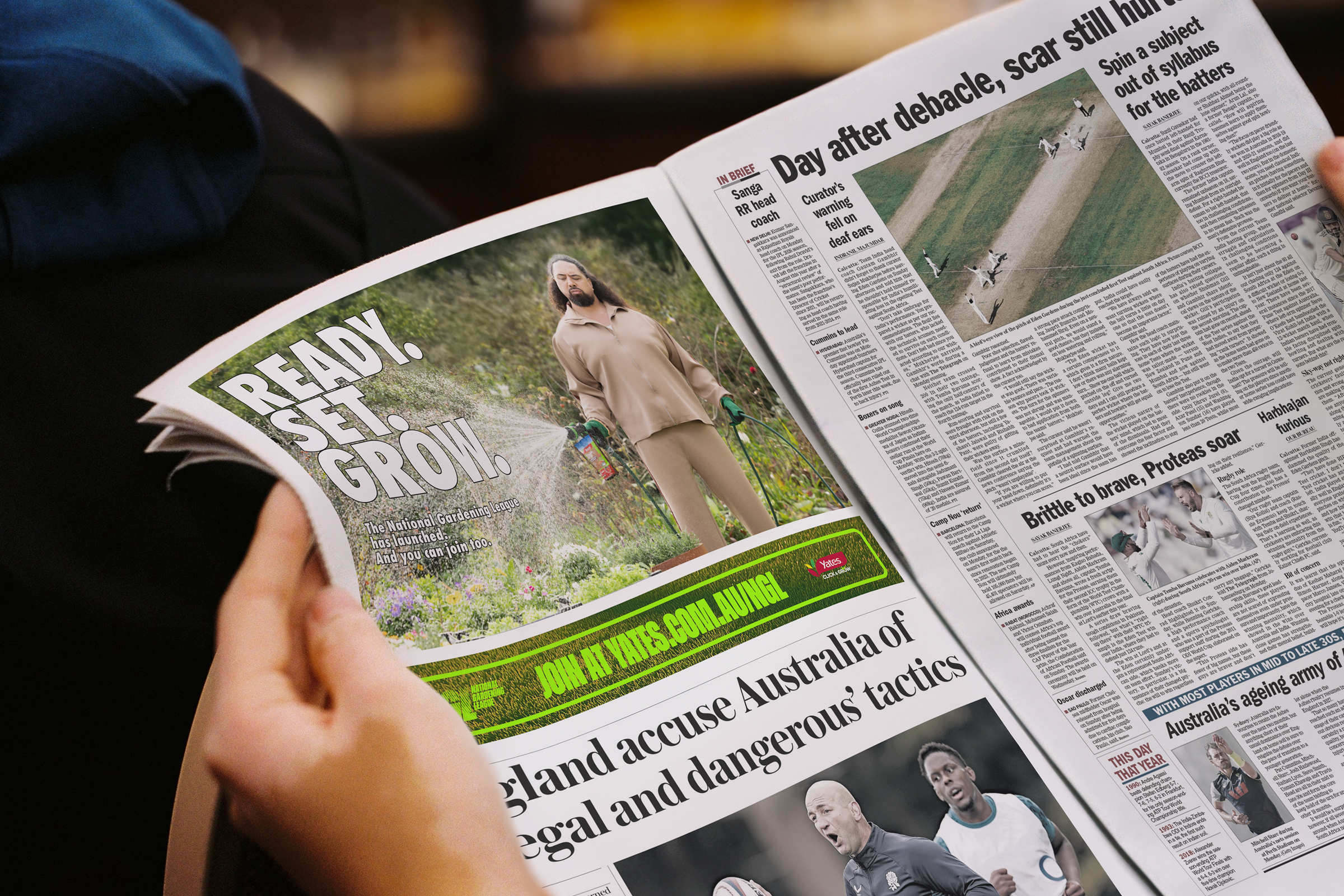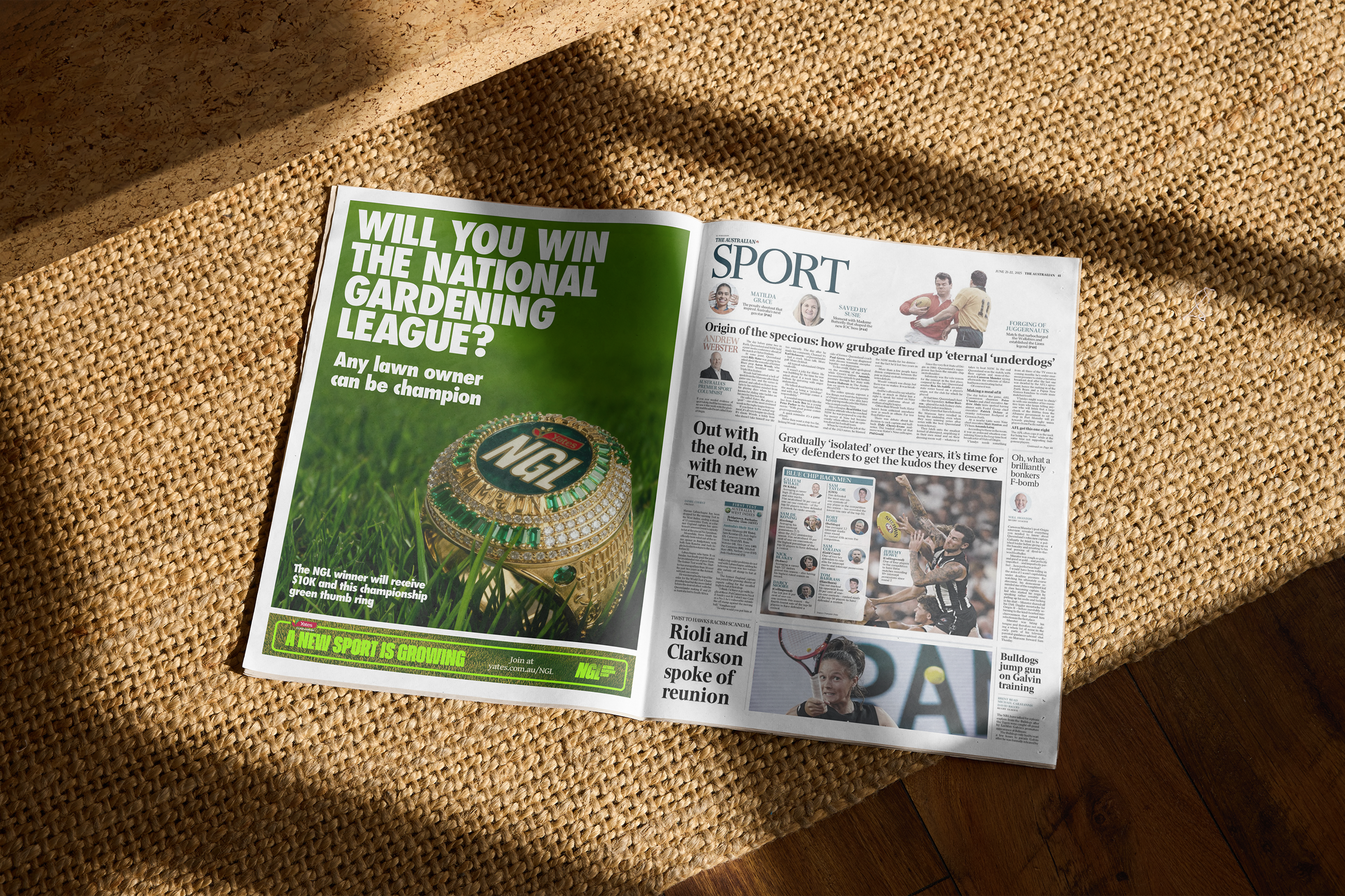 To kick it off, we turned gardening into a tongue-in-cheek sporting spectacle: the National Gardening League (NGL). Lawns became the athletes, refs judged the turf, leaderboards tracked the action, and the prize was $10,000 plus a Championship Green Thumb Ring, rolled out across TV, OOH, radio, social, and even AFL + NRL stadiums.
